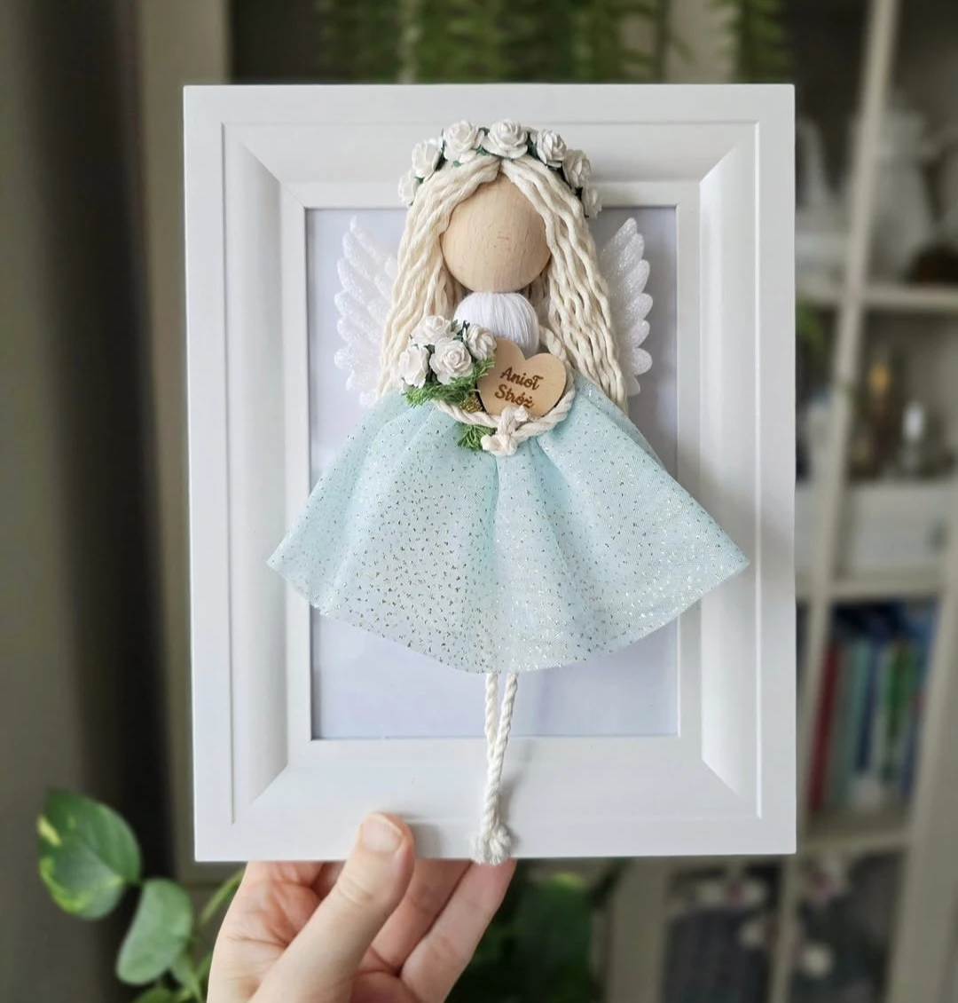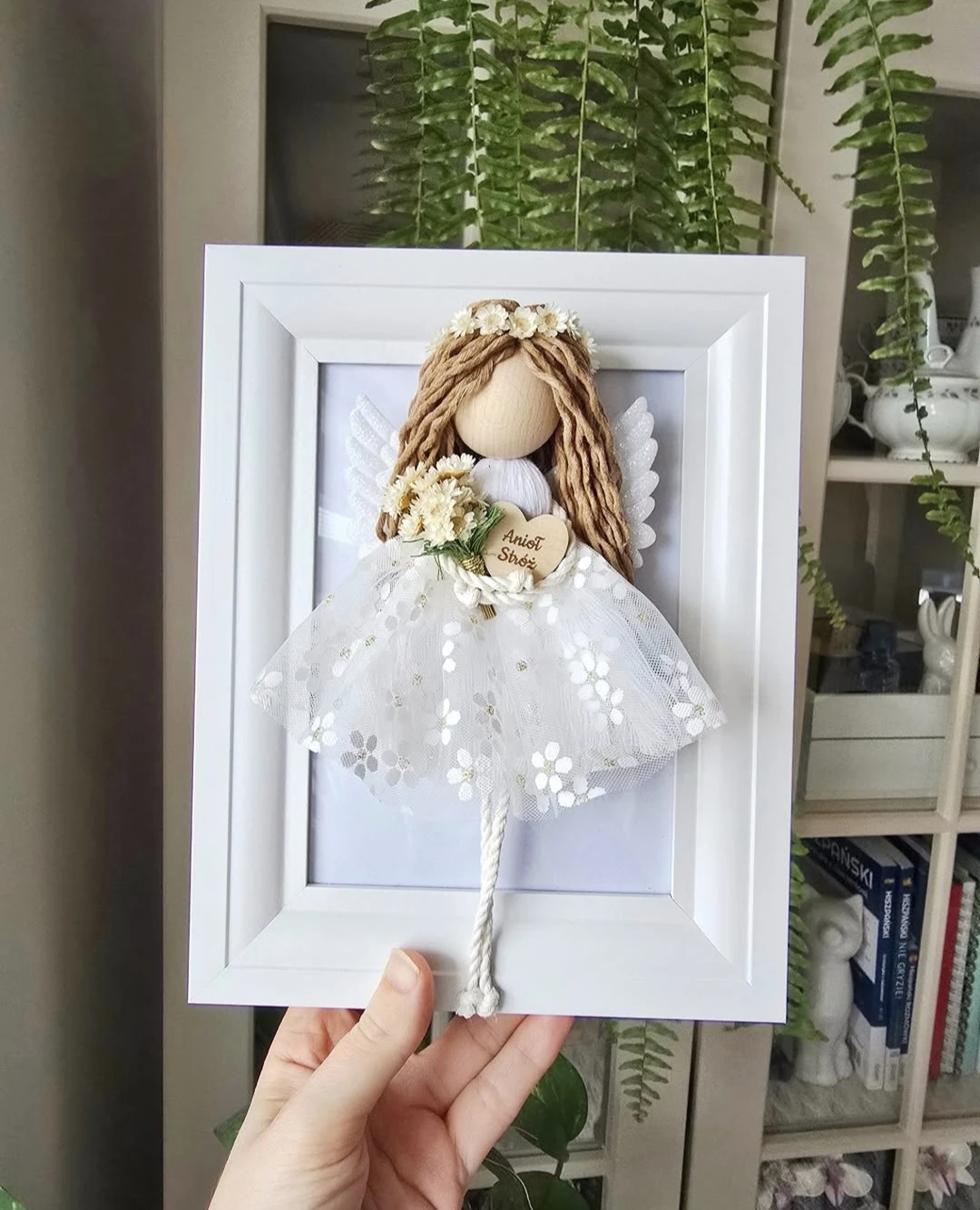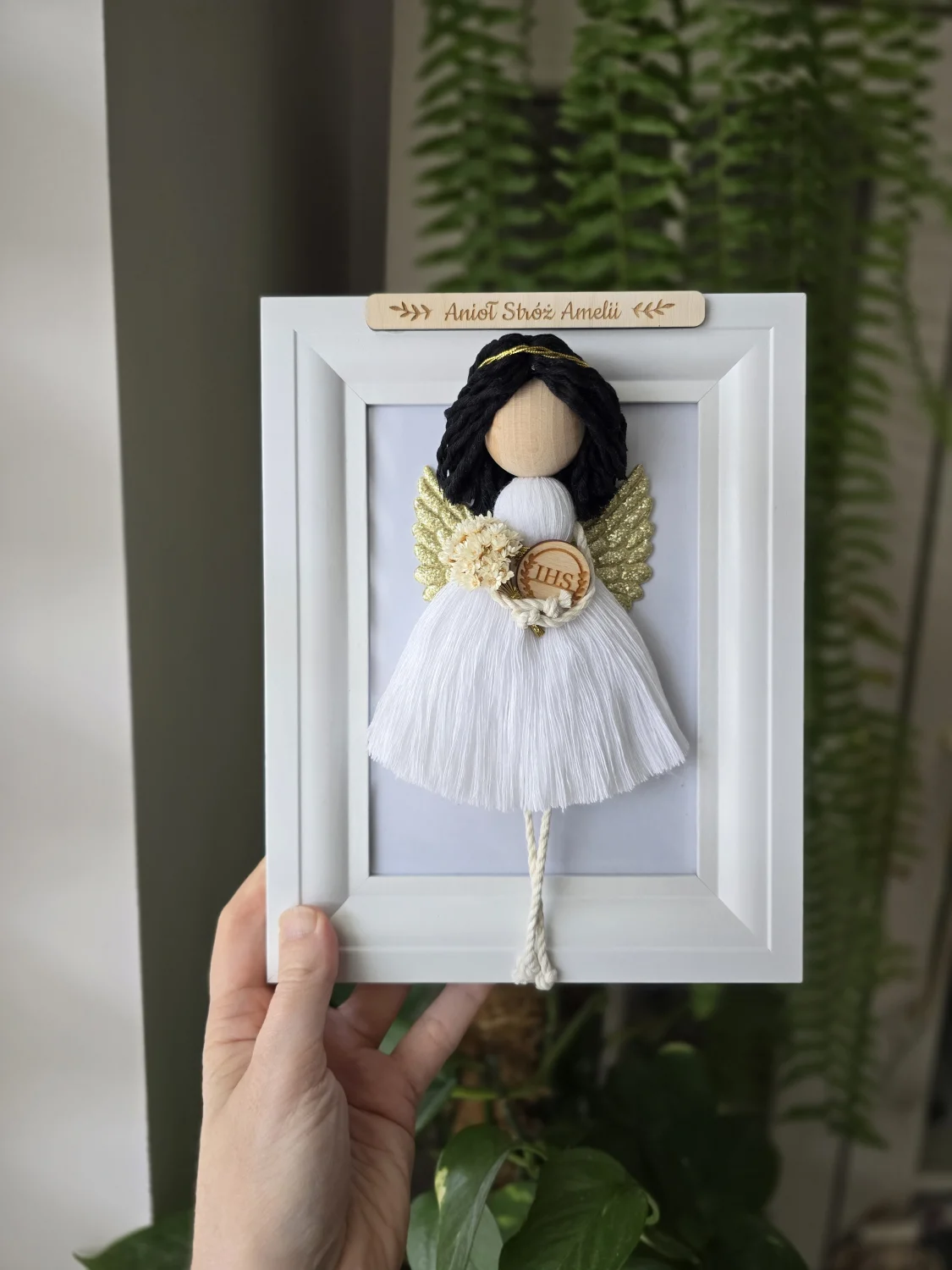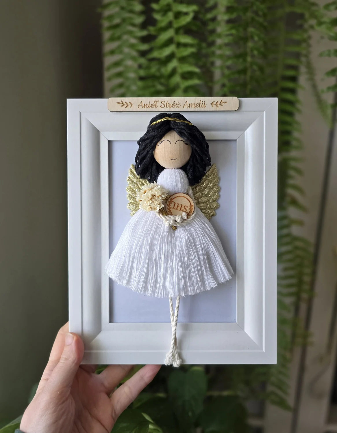 Makramowy aniołek to nie tylko wyjątkowy prezent na ważne uroczystości jak Komunia Święta, Chrzest czy roczek dziewczynki.