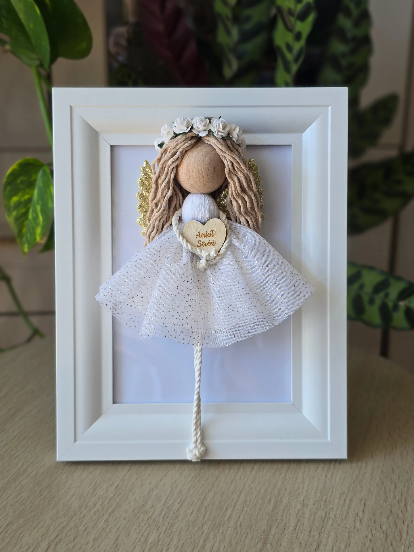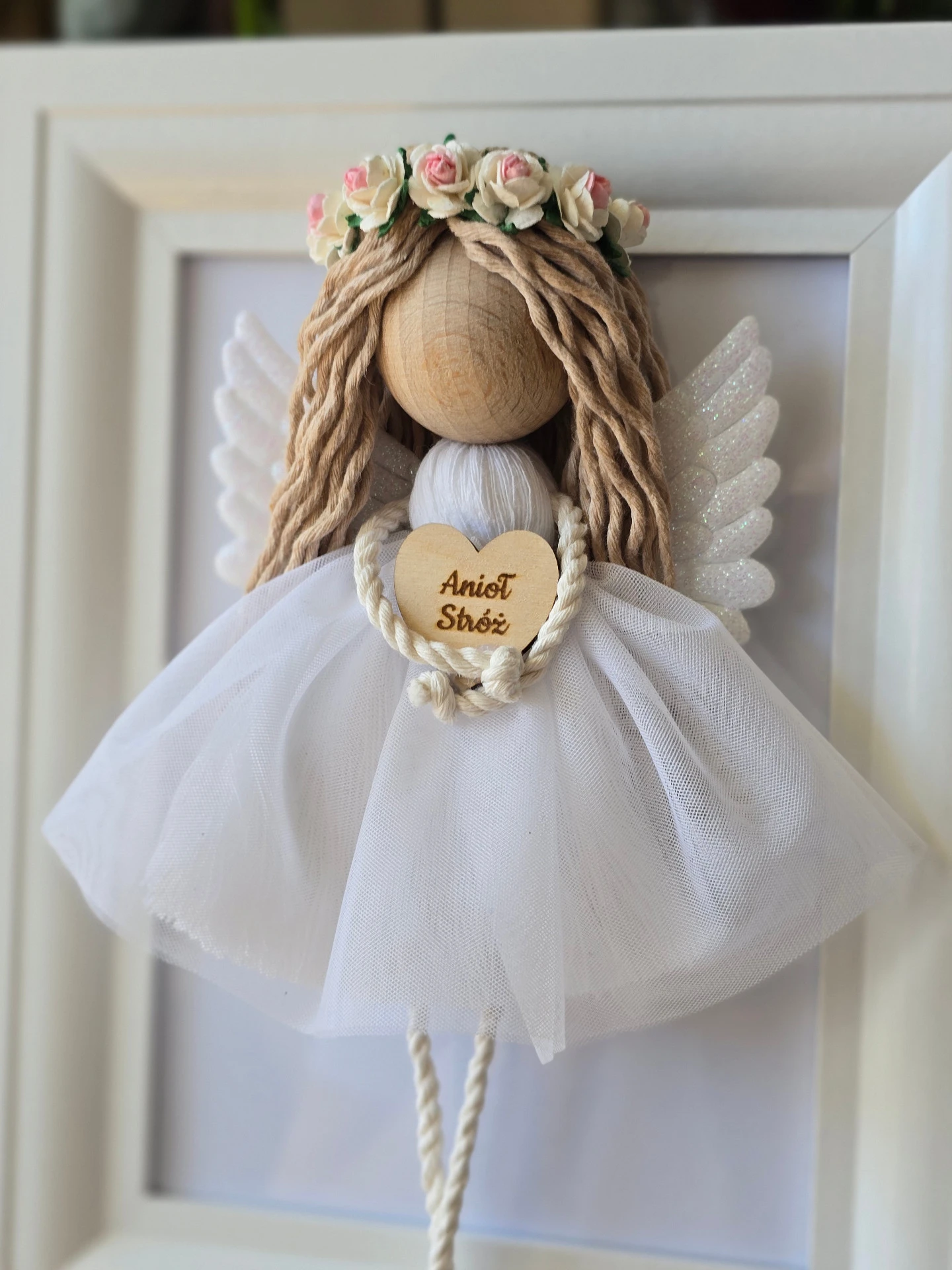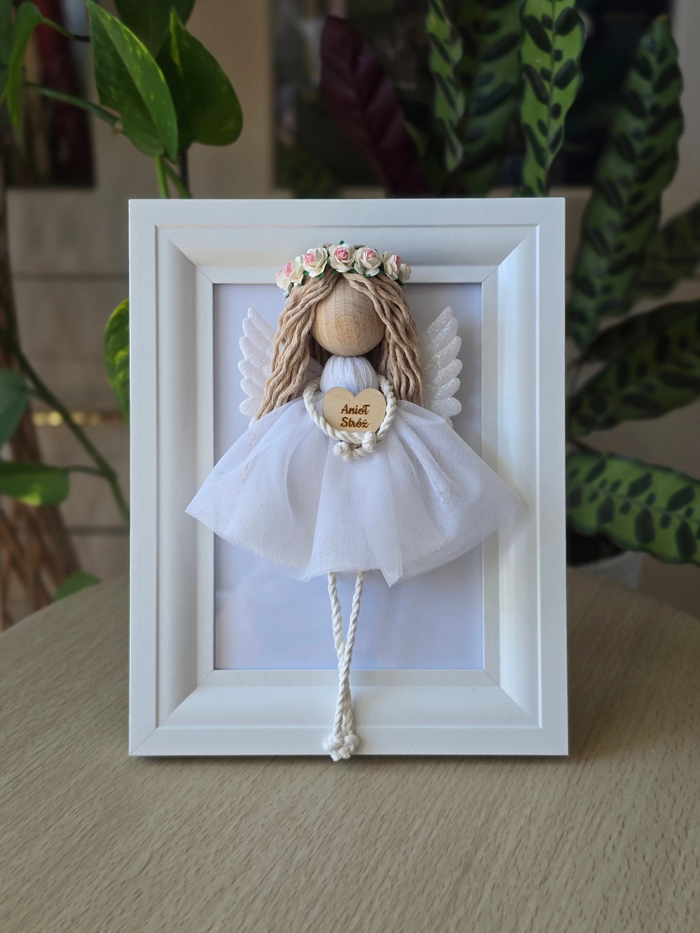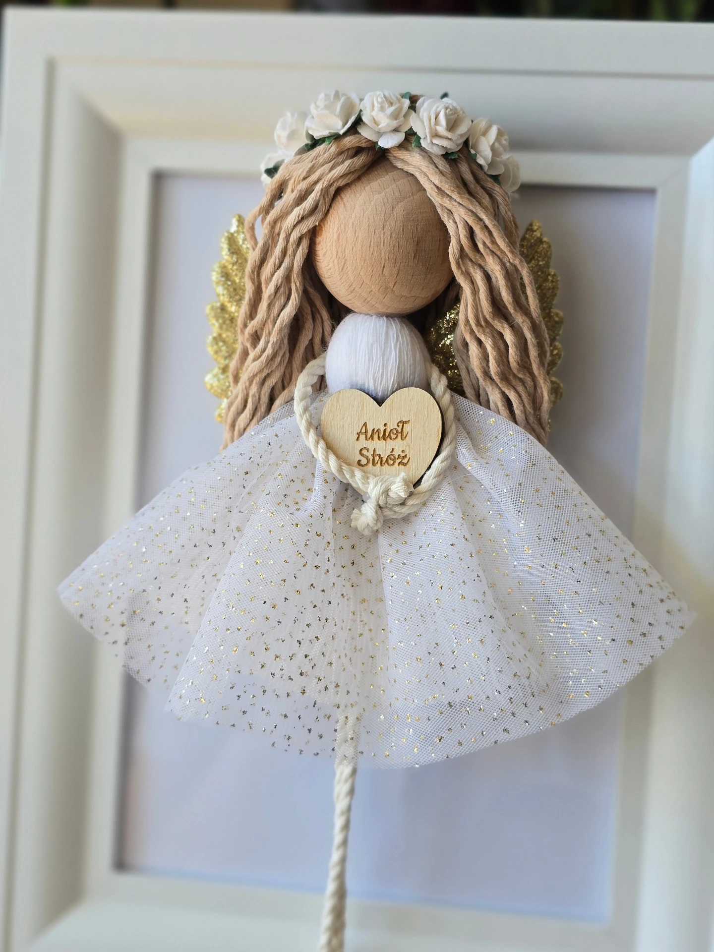 Makramowy aniołek to nie tylko wyjątkowy prezent na ważne uroczystości jak Komunia Święta, Chrzest czy roczek dziewczynki.
