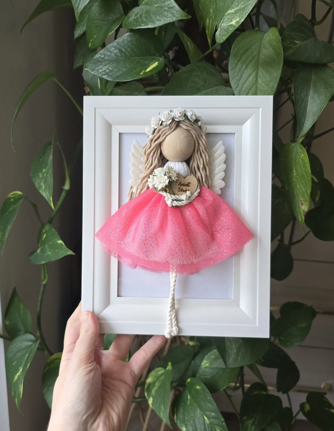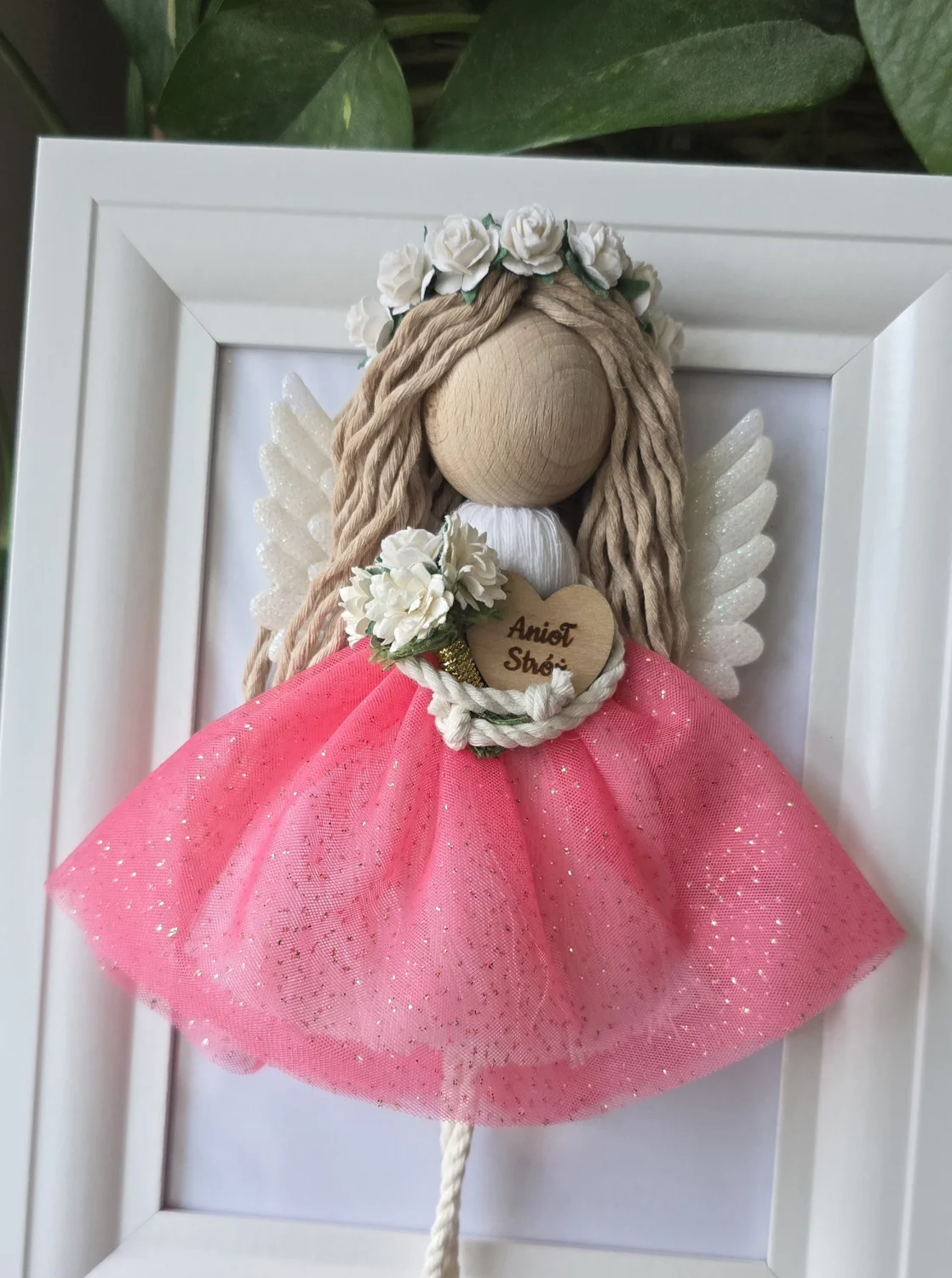 Makramowy aniołek to wyjątkowy prezent na ważne uroczystości jak Komunia Święta, Chrzest czy roczek dziewczynki.